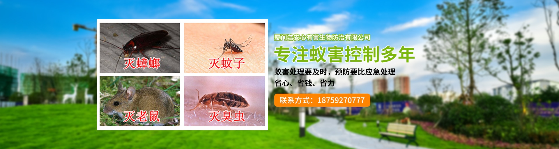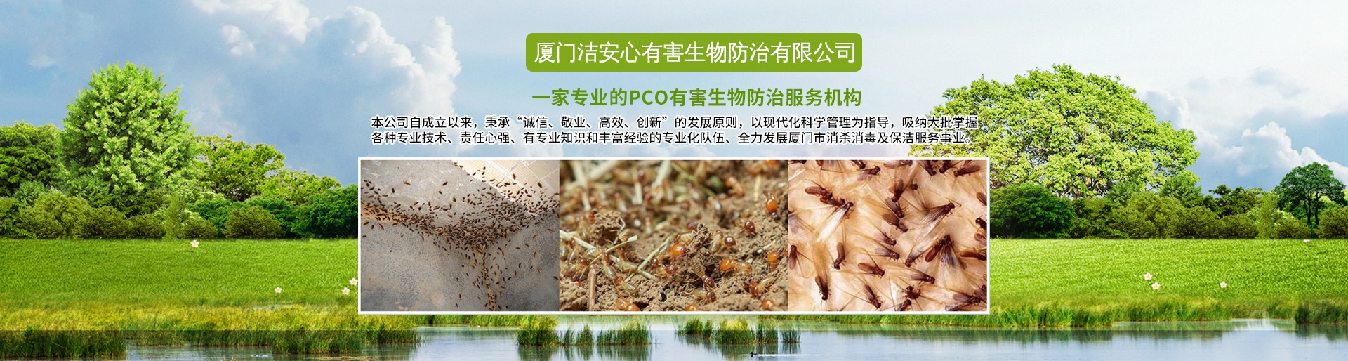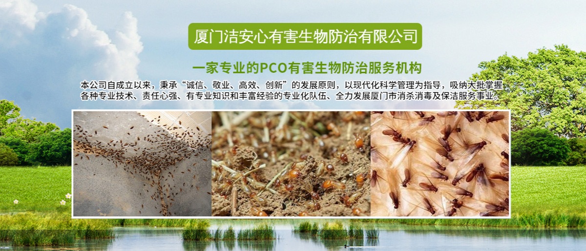 廈門潔安心有害生物防治有限公司成立于2020年是一家專業(yè)的PCO有害生物防治服務(wù)機(jī)構(gòu),是經(jīng)廈門市工商局注冊(cè)登記、廈門市白蟻防治管理所、PCO協(xié)會(huì)批準(zhǔn)的城市害蟲綜合治理公司,專業(yè)殺臭蟲、殺白蟻、殺蟲、滅老鼠的公司,是集廈門白蟻防治、廈門殺蟲、滅鼠滅四害、廈門殺臭蟲、廈門殺白蟻、廈門滅蟑螂治理銷售于一體的大型專業(yè)廈門有害生物環(huán)保服務(wù)公司。主要從事新建、擴(kuò)建、改建、裝飾裝修單位建筑物的白蟻防治和白蟻預(yù)防工程,同時(shí)從事工廠、酒店、企事業(yè)單位、住宅小區(qū)和家庭的”四害”滅治和白蟻防治服務(wù),長(zhǎng)期向各類型客戶提供廈門白蟻防治、廈門殺蟲、滅四害,廈門殺臭蟲、廈門殺白蟻、廈門滅鼠等優(yōu)質(zhì)服務(wù)。